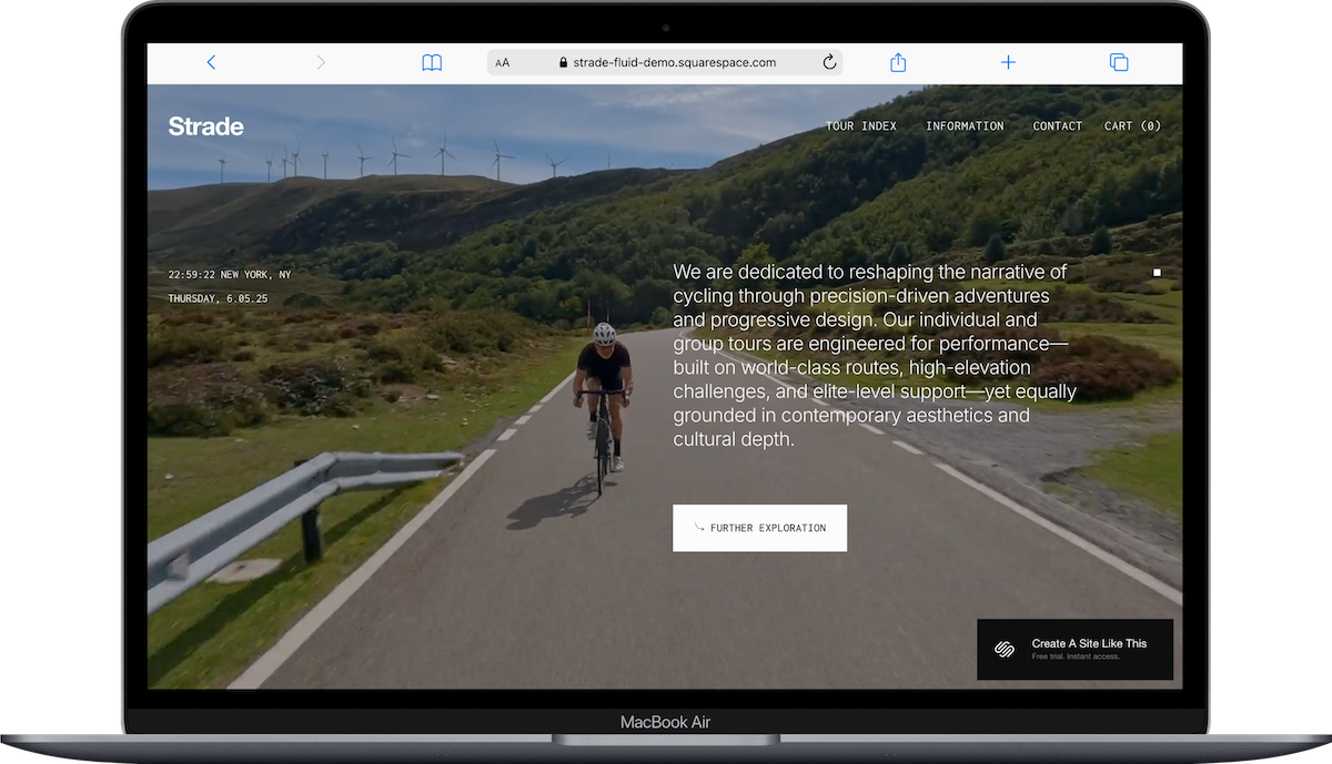 It's built for properties that want to feel elevated. If your brand leans more toward luxury and you've invested in professional photography, Barbosa is likely your pick for a Squarespace boutique hotel website that looks the part.