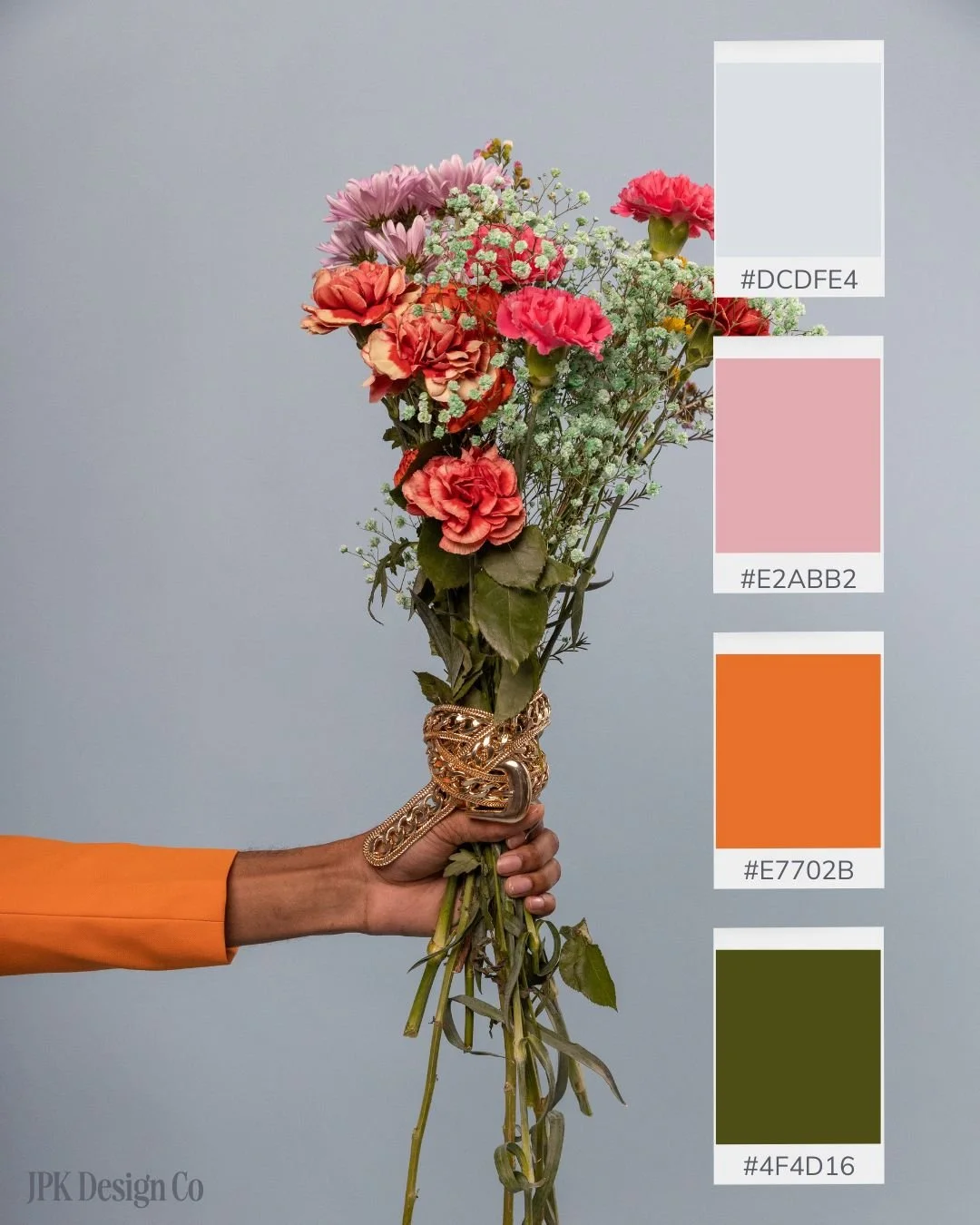 Cream, dusty pink, bright orange, and olive green. When you need your brand to stand out. That orange is doing the work here – it's confident and memorable. Great for career coaches, authors, digital marketers.