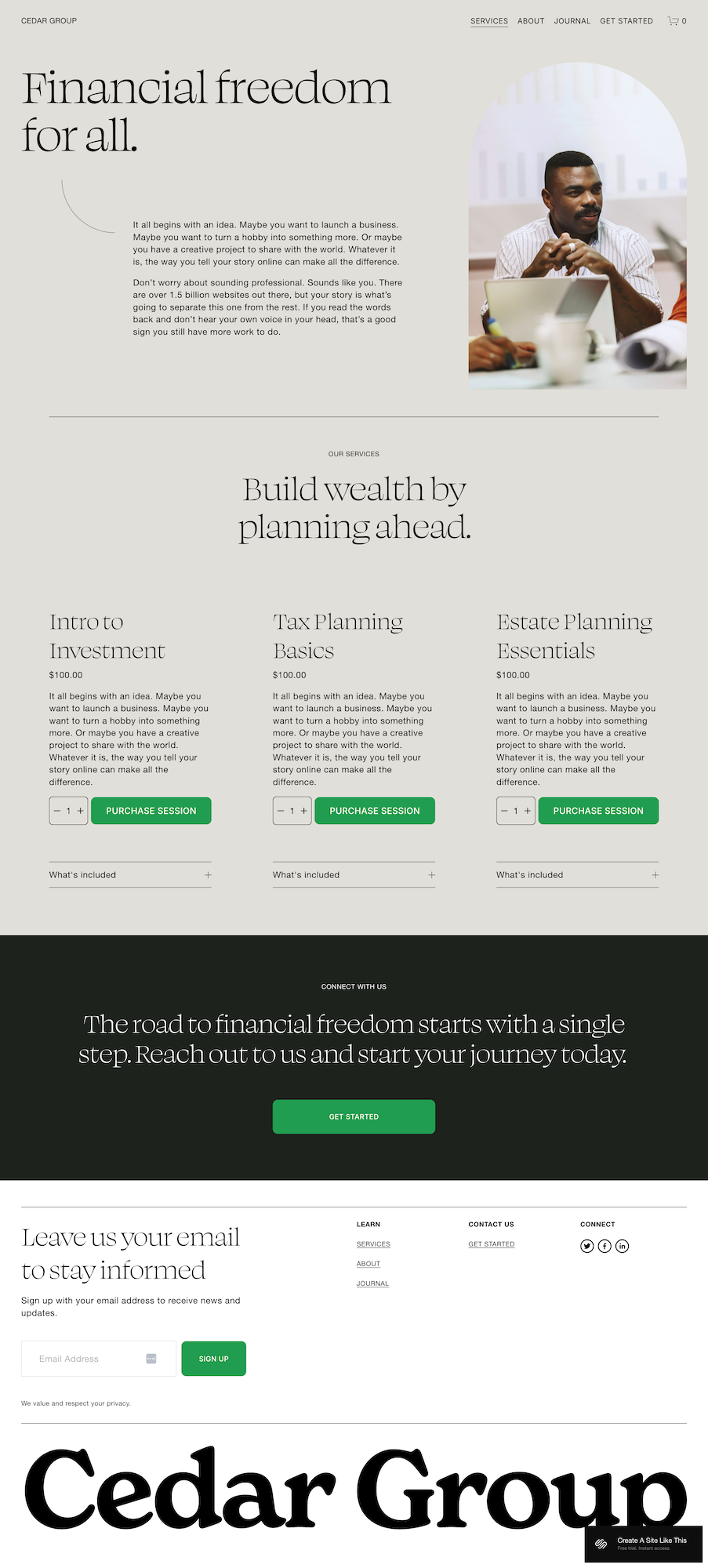 Cedar is a Squarespace template made for financial advisors, consultants, and professionals.