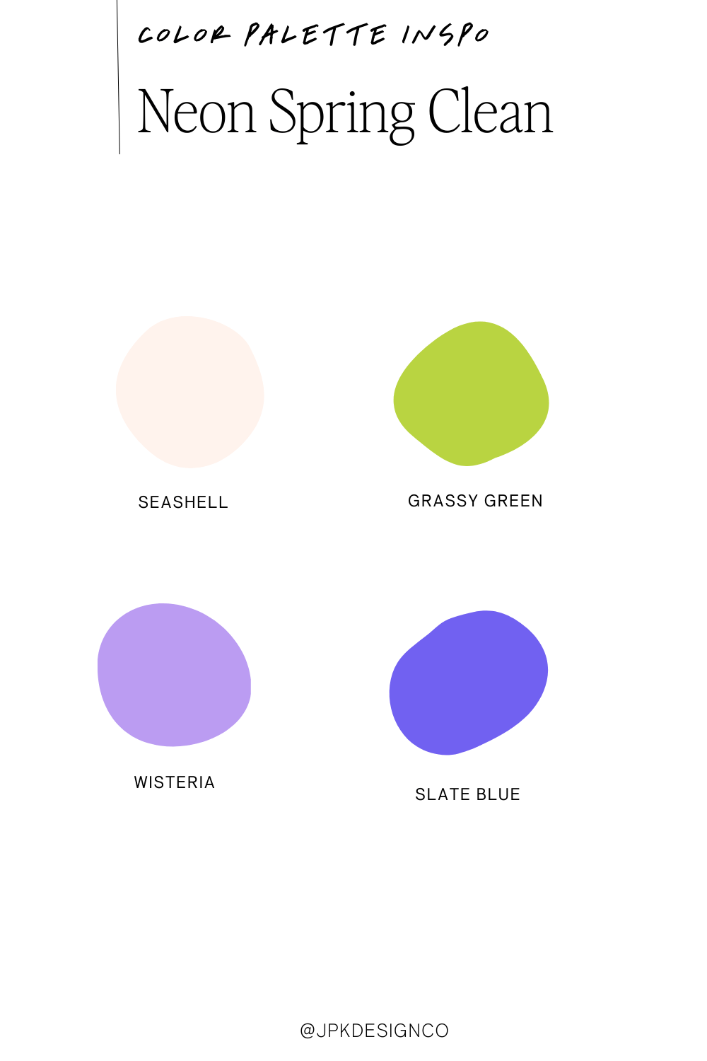 Soft seashell pink, vibrant grassy green, gentle wisteria purple, and bold slate blue. Like giving your brand a breath of fresh air.