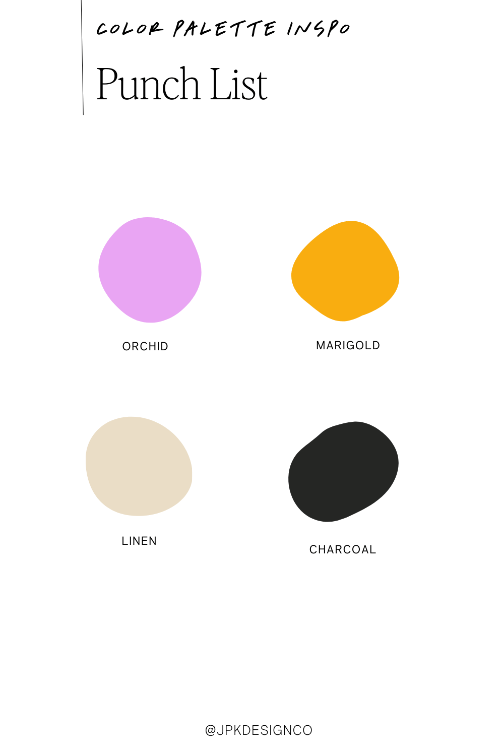 Vibrant orchid purple meets warm marigold orange, grounded by soft linen beige and sophisticated charcoal. When you want your brand to pack a punch.