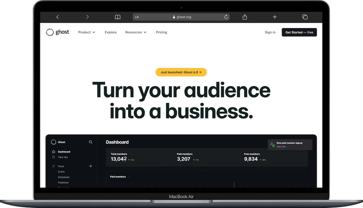 Ghost is an open-source publishing platform built for bloggers, journalists, and independent publishers. It's used to create content-driven websites with built-in newsletters, audience management, and paid membership features. Ghost is popular with writers who want to own their platform and monetize directly through subscriptions rather than ads. Publications like The Browser, 404 Media, and many independent writers use Ghost as their primary publishing tool.