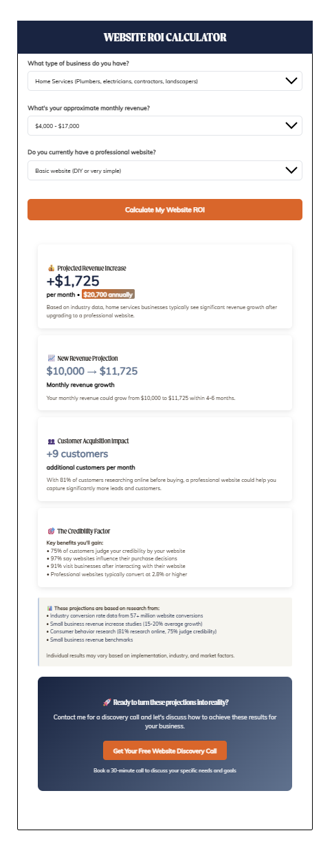 Just plug in your business type, revenue range and current website status, and it’ll show you:
